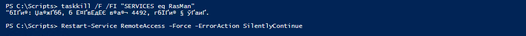 Restart-Service RemoteAccess -Force -ErrorAction SilentlyContinue
